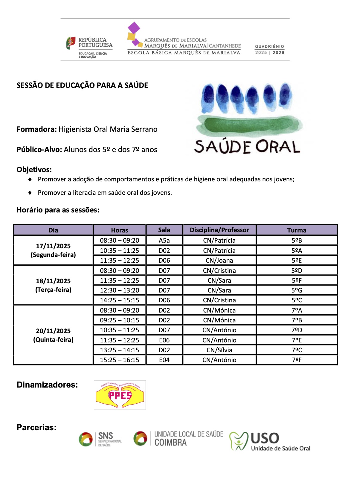 Sessão de Educação Para a Saúde | 17, 18 e 20 novembro