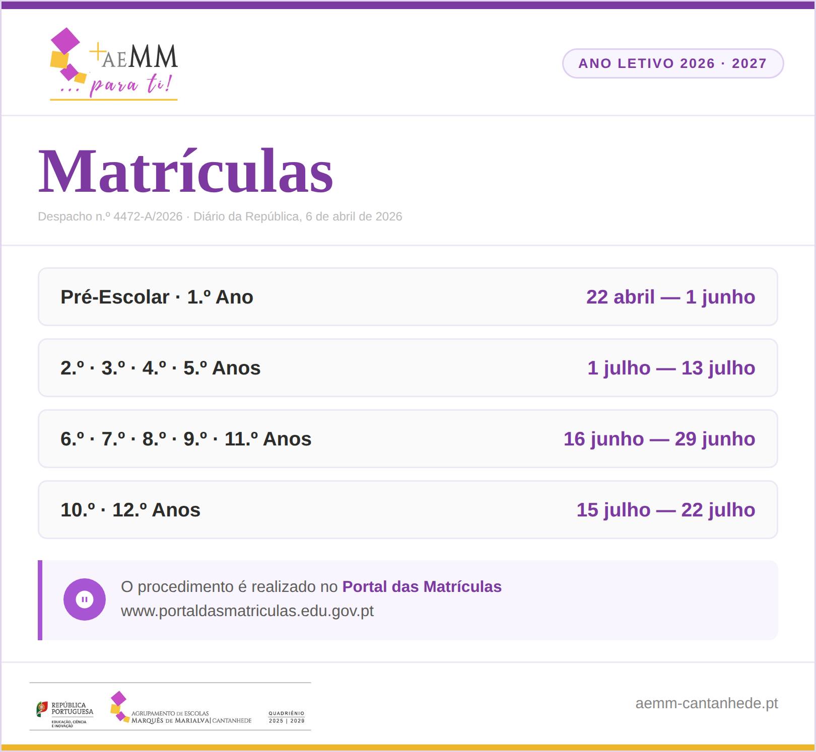 Matrículas | Ano letivo 2026/2027