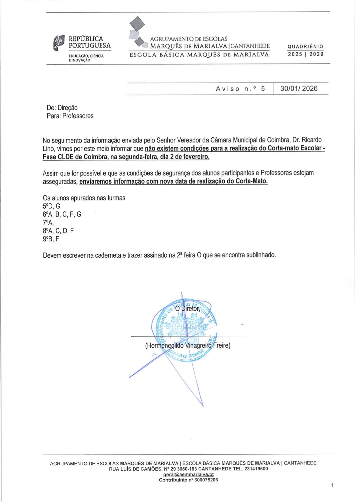 Aviso n.º 5 - Cancelamento de Corta-Mato Escolar